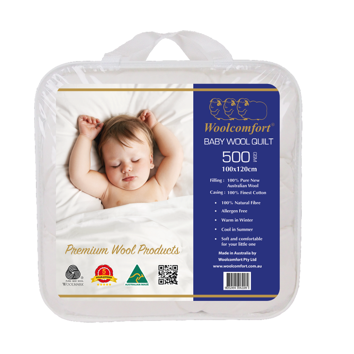 Wool quilts are a natural way to maximise your baby's comfort at night during any season. Our wool quilts are made with 100% natural Australian wool and have been treated to eliminate odours and allergy-triggering irritants. Ensure your baby's restful night's sleep with this cot sized, natural wool quilt.