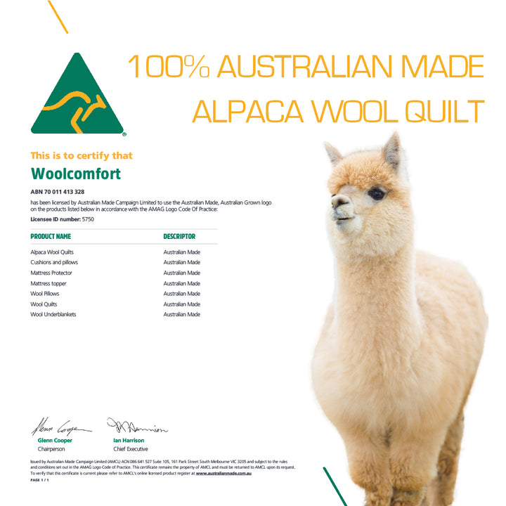 A luxury Alpaca wool quilt designed for Australia's climates. For those sleepers who need to be super warm and comfortable at night.