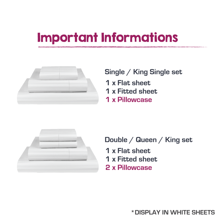 Transcend the ambiance of your bedroom with stylish indulgence of 1000 thread count Ultra Soft Microfibre sheets. The stripe designs gives the bedding a subtle sheen to go along with its luxurious softness, bringing elements of warmth, elegance and comfort to any space, available in range of colours.
