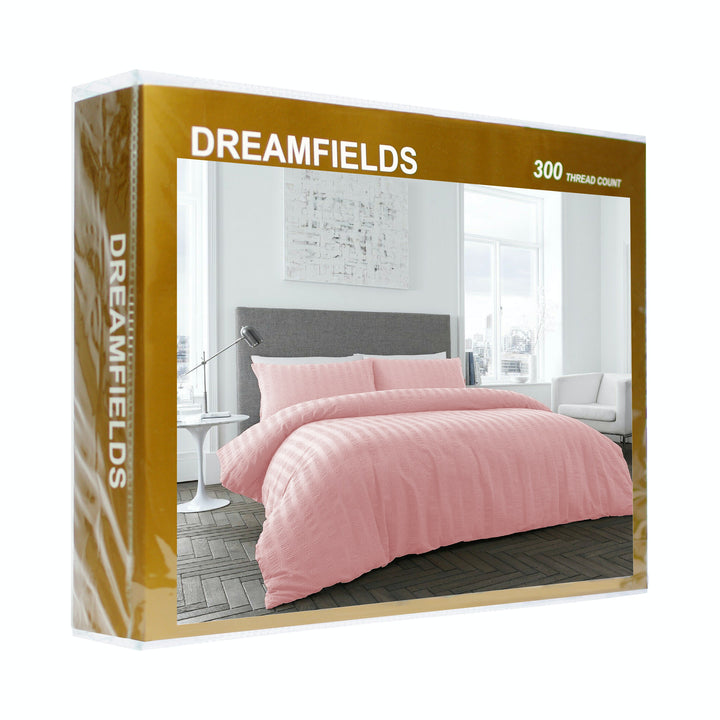 Dreamfields Blush Seersucker Design Quilt Doona Duvet Cover Set