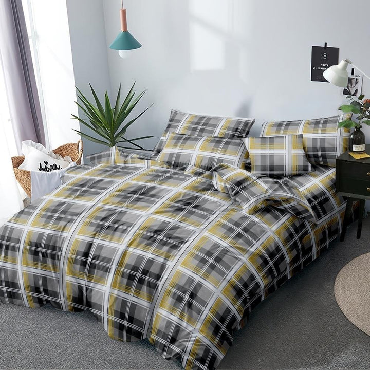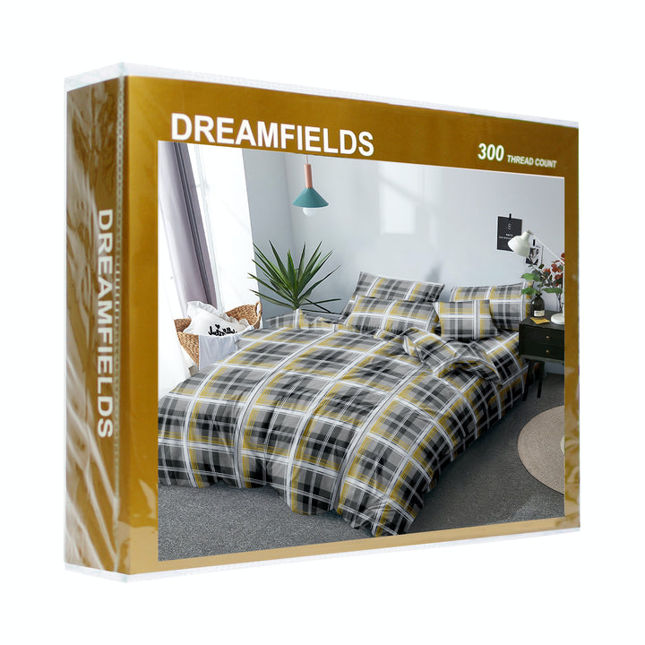Dreamfields Denim Check Yellow Grey Design Quilt Doona Duvet Cover Set