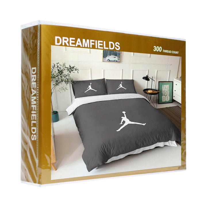 Dreamfields Grey Jordon Design Quilt Doona Duvet Cover Set
