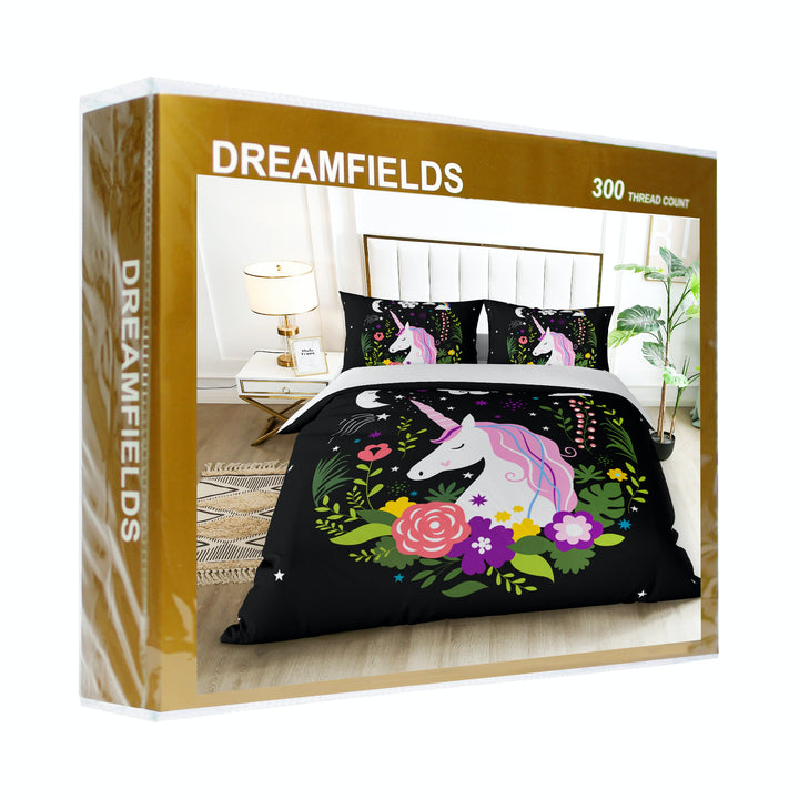 Dreamfields My Unicorn Black Design Quilt Doona Duvet Cover Set