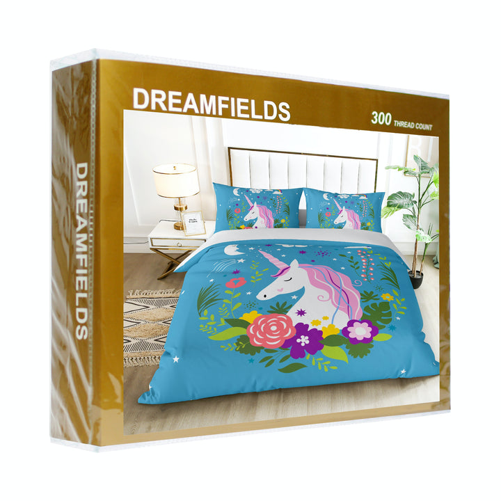 Dreamfields My Unicorn Blue Design Quilt Doona Duvet Cover Set