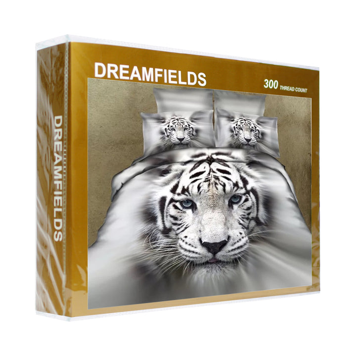 Dreamfields White Tiger Design Quilt Doona Duvet Cover Set