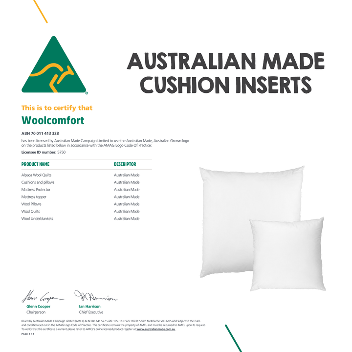 Luxor Australian Made Premium Cushion Inserts in Square or Round Shapes