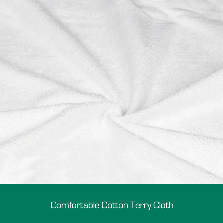 The absorbent terry fabric cover, with waterproof Polyurethane backing, provides the functionality of protecting against stains, spills, and allergens plus the added comfort of extra insulation, keeping you warm and dry.