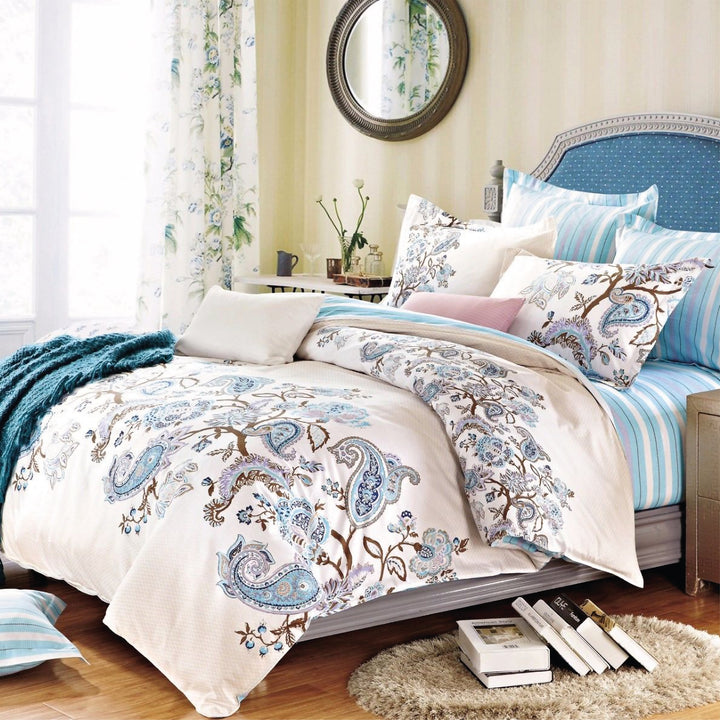 Luxor Cotton Blue Paisley Design Quilt Doona Duvet Cover Set