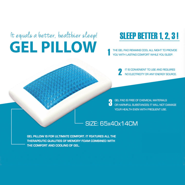 The MemoGel Pillow provides both cradling neck and head support with high density Memory Foam, and cooling comfort relief with a built in Cooling Gel layer. The MemoGel pillow helps your body maintain a comfortable cooler temperature whilst sleeping and provides your head with the comfort and support it needs for a restful nights sleep.